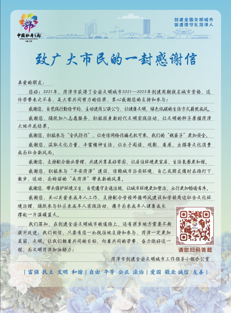 創(chuàng)建全國文明城市,做遵德守禮菏澤人